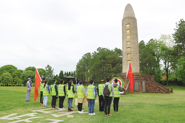 圖為中國十九冶瑞金項目部黨員參觀瑞金紅軍烈士紀念塔