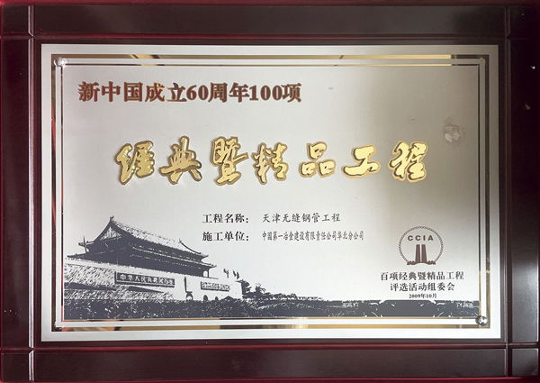 天津鋼管工程被中國建筑業(yè)協(xié)會聯(lián)合冶金、化工、有色、交通等協(xié)會評選為“新中國60年100項經(jīng)典暨精品工程”。