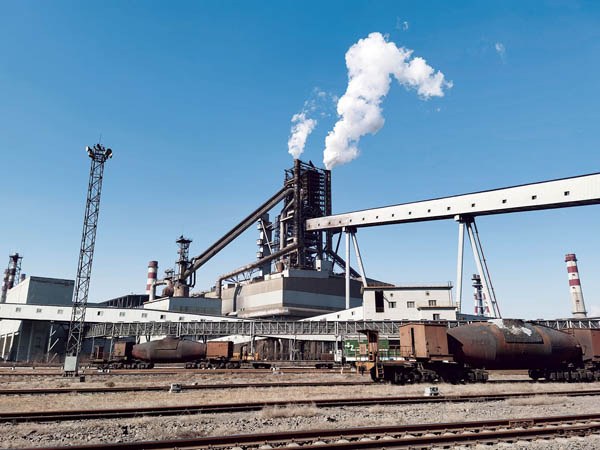 圖為鐵水罐車正忙碌穿梭在作業區。