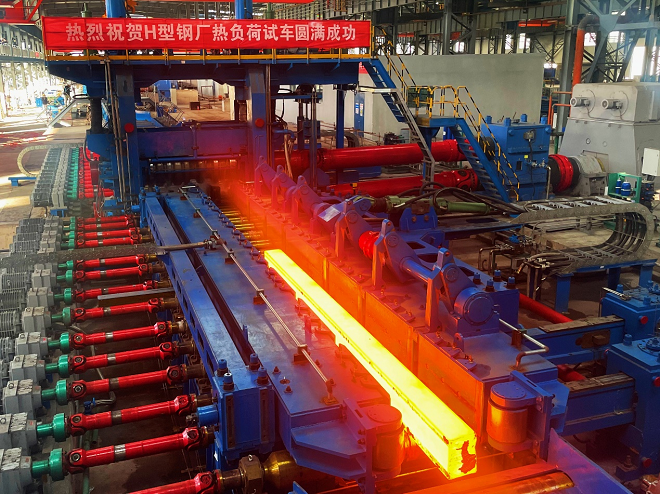 型鋼是怎樣煉成的?連鑄機(jī)鑄成的鋼坯,經(jīng)火切機(jī)切成定尺鋼坯,經(jīng)加熱爐加熱到1200度左右,到粗軋、精軋壓制成型鋼,再到步進(jìn)冷床冷卻、過(guò)調(diào)直機(jī)調(diào)直,最后到冷鋸切成12米一根的型鋼,用浴火涅槃四個(gè)字來(lái)形容一點(diǎn)不為過(guò)。11月15日,中國(guó)二十二冶集團(tuán)承建烏海市包鋼萬(wàn)騰鋼鐵有限責(zé)任公司H500型鋼項(xiàng)目試車(chē)成功順利投產(chǎn)。此時(shí)此刻,數(shù)月來(lái)的艱難辛苦、奔波勞累全都煙消云散,定格在畫(huà)面上的只有驕傲與自豪。