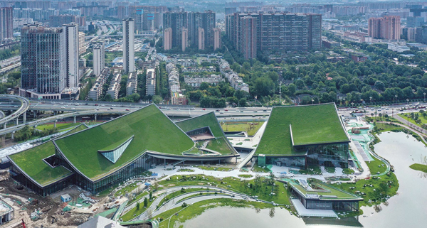 中國五冶在成都天府藝術公園項目建設過程中,采用了多項綠色施工技術,降低了環境成本。圖為成都天府藝術公園全景。(中國五冶提供)