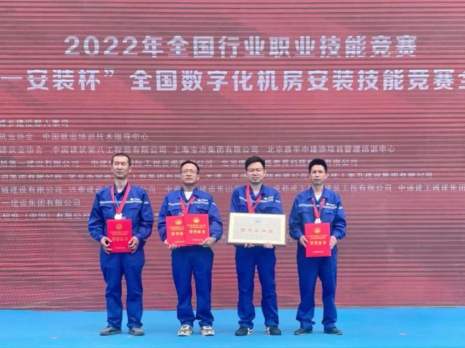 比賽爭分奪秒,選手們既要有抗壓的大心臟,也要對時間進行合理統籌。在中國五冶集團代表隊的工位上,焊花飛舞,4名參賽選手配合默契,管道焊接、設備裝配等工作有序進行;隨著時間的推移,從幾十斤重的大配件到尺寸精確到毫米的小零件,都被選手們安裝在準確的位置,數字化機房漸具雛形。經過8小時的鏖戰,實操考核迎來尾聲,一個個完整的數字化機房陸續出現在賽場上。中國五冶集團代表隊憑借作品的規范、美觀、精度和質量,從眾多強敵中突圍而出,取得了實操評分第三名的優異成績。