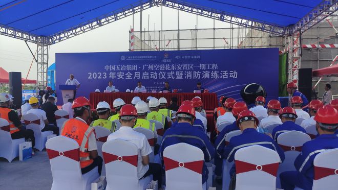 6月1日上午,廣州空港花東安置區一期工程項目2023年安全生產月啟動儀式暨消防演練活動在中國五冶集團承建的三標段現場舉行。業主單位、監理單位、各參建單位及施工班組代表共100余人參加了活動。
