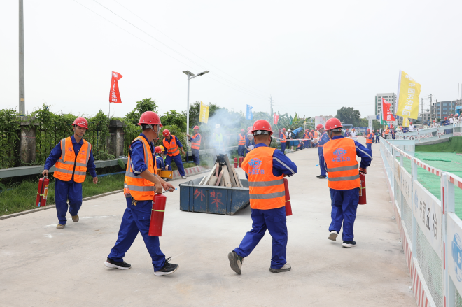 隨后,與會嘉賓共同學習了消防安全知識,觀摩了由項目部管理人員和作業人員開展的消防應急演練活動。本次演練模擬施工區域因線路老化、短路引發的火災和人身傷害事件后全流程的處理。演練中,各應急小組快速出動,協同聯動、有序處理現場應急情況并及時開展救援,有效鍛煉了項目部應對緊急突發事件的能力。