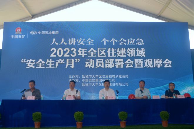 今年6月是全國第22個“安全生產(chǎn)月”,主題為“人人講安全,個個會應(yīng)急”。6月11日,由鹽城市大豐區(qū)住房和城鄉(xiāng)建設(shè)局主辦,中國五冶集團承辦的鹽城市大豐區(qū)住建領(lǐng)域“安全生產(chǎn)月”動員部署會暨現(xiàn)場觀摩會在大豐安置房潤富花園二期項目舉辦。鹽城市大豐區(qū)副區(qū)長薛文杰,大豐區(qū)住建局局長陳國軍、副局長王政、張兆宇,鹽城市大豐區(qū)城市建設(shè)集團有限公司董事長桂柏祥,鹽城市大豐區(qū)振城建設(shè)有限公司董事長劉東亞,中國五冶集團有限公司華東公司副總經(jīng)理馮世全,大豐區(qū)各鎮(zhèn)(街道)、經(jīng)濟開發(fā)區(qū)、港區(qū)住建領(lǐng)域相關(guān)負責人,大豐區(qū)建筑施工、監(jiān)理企業(yè)主要負責人,在建項目建設(shè)、施工、監(jiān)理單位項目負責人等200余人參加活動。