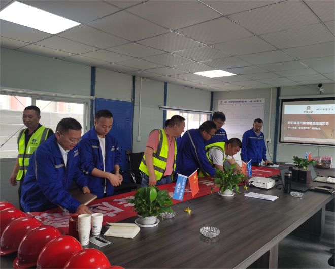 啟動儀式上,項目經(jīng)理金昌友以“安全生產(chǎn)月”活動為契機(jī),對國務(wù)院安全生產(chǎn)“十五條”硬措施科普宣傳;對開陽縣建筑領(lǐng)域動火作業(yè)、房屋市政工程領(lǐng)域重大事故隱患專項排查和安全生產(chǎn)打非治違專項行動等文件宣貫學(xué)習(xí);對項目部各崗位安全職責(zé)強(qiáng)化教育。項目總工張波強(qiáng)調(diào)項目部全體員工要重視安全,樹立“生命至上、安全第一”的理念,安全措施要加強(qiáng)落實,真正做到未雨綢繆,防范于未然。項目施工經(jīng)理李志國通過安全事故警示案例強(qiáng)調(diào)員工思想上繃緊“弦”,行動上鉚足“勁”,同時對現(xiàn)場防汛應(yīng)急演練、高空作業(yè)和防暑降溫等工作作出部署。儀式結(jié)尾,項目經(jīng)理金昌友帶領(lǐng)全體員工進(jìn)行了安全宣誓,同時帶領(lǐng)員工在安全生產(chǎn)承諾簽字條幅上簽名。