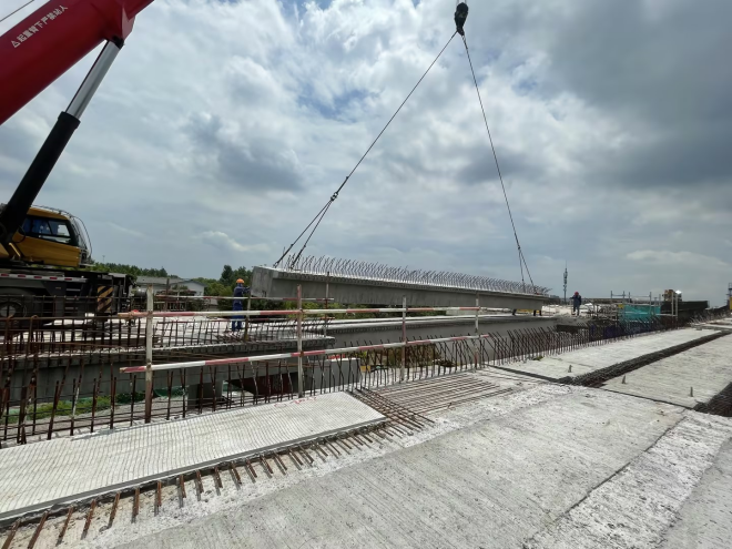 近日,隨著項目主線G1503跨線橋最后一跨預制梁吊裝的平穩安全落位,這也標志由中國五冶參建的陸翔路(鄱陽湖路-楊南路)道路新建工程實現了全線順利貫通,為后續如期通車奠定了堅實的基礎。