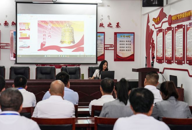 活動當天,雙方支部黨員一同參觀了位于遷安黃臺山公園內的楊秀峰紀念廣場,講解員為大家講述了楊秀峰的光榮事跡,先輩廉潔清正、紀律嚴明的革命精神使在場的所有黨員受到了一次心靈的洗禮。隨后,大家一同參加了大五里鎮“黨風廉政培訓班”,上了一堂主題為“警鐘長鳴、防微杜漸”的黨課,遷安市紀委的工作人員以實際案例的形式講解了腐敗給國家和個人帶來的危害,為黨員們上了一堂生動的廉潔黨課,警戒大家在工作中要切實恪守廉潔干事不徇私的信條。最后,全體黨員在“廉潔”條幅上簽字銘誓。
