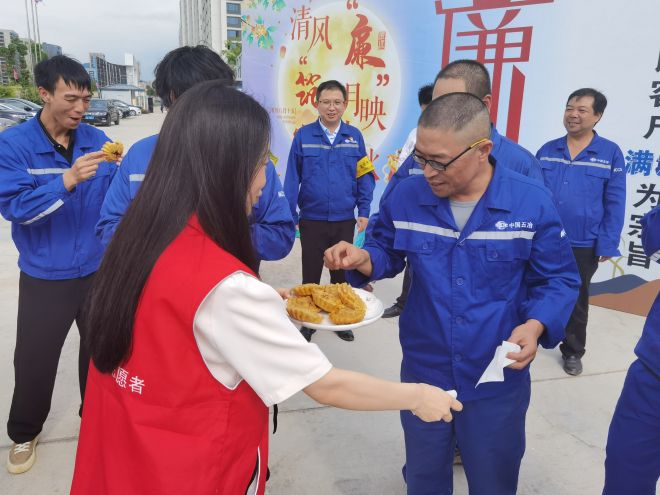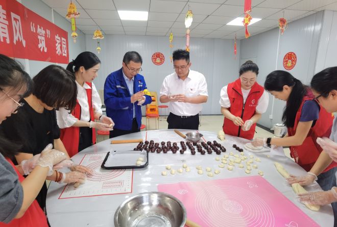 黨員干部們親手制作“廉”蓉餡“廉心”月餅,廉潔元素被巧妙地融入月餅之中,將“廉”捧在手中,印入心中。還制作了杭州特色小吃油墩兒,回憶兒時的味道。隨后將熱氣騰騰的“廉心”月餅和油墩兒送到項目管理人員的手中,提醒他們要時刻保持警醒,過上一個幸福圓滿、廉潔的中秋節。