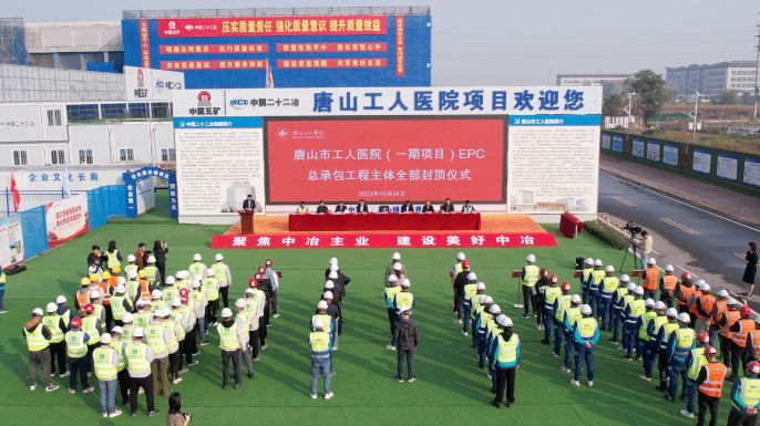 中國二十二冶唐山工人醫院項目全部主樓主體結構封頂