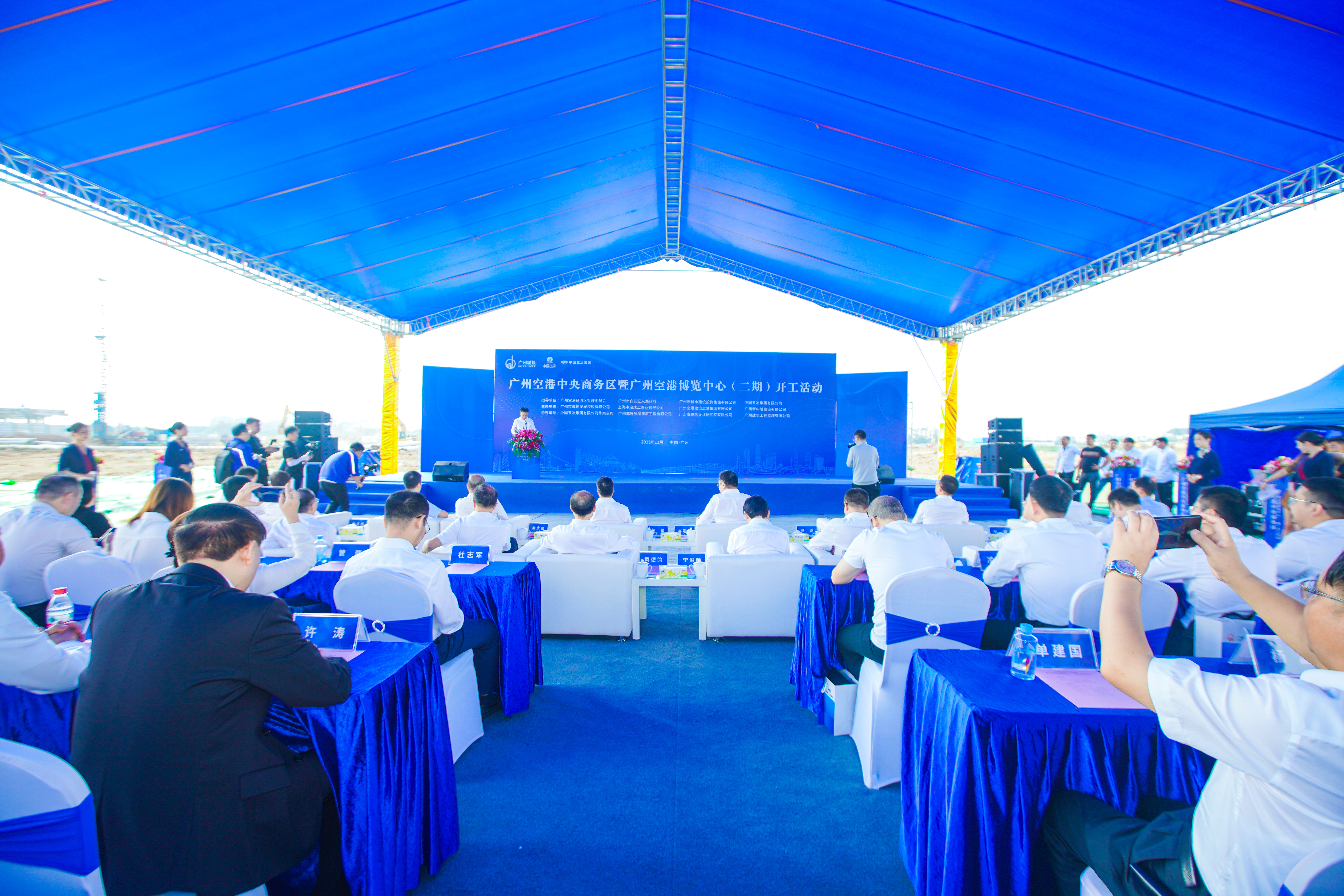 活動現(xiàn)場,相關(guān)部門和單位致辭后,現(xiàn)場領(lǐng)導(dǎo)嘉賓共同上臺推桿啟動,宣布廣州空港中央商務(wù)區(qū)暨廣州空港博覽中心(二期)項目正式開工。