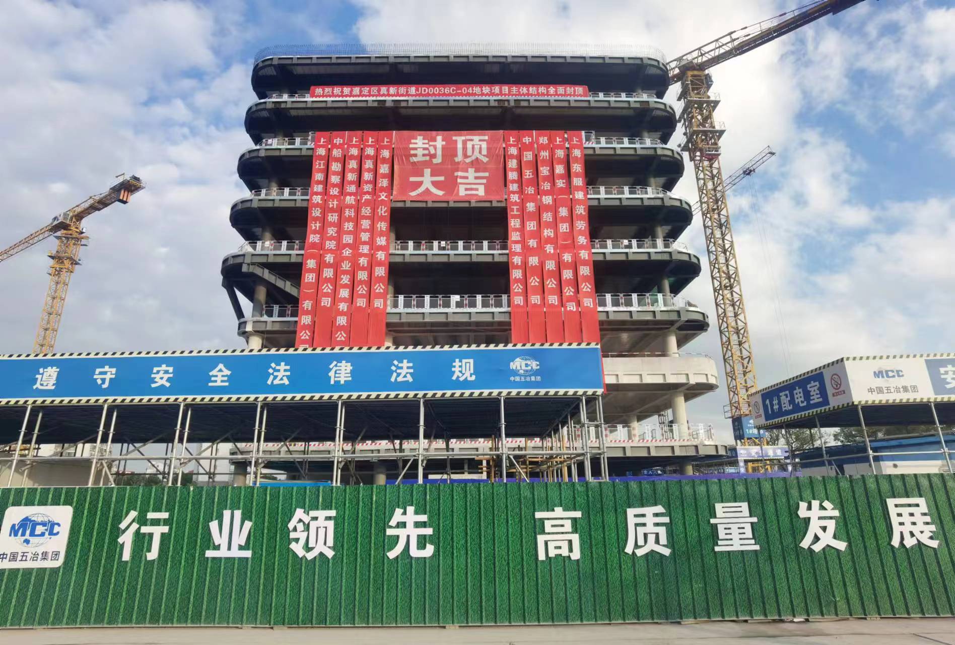 11月12日下午15時(shí)30分,由中國(guó)五冶集團(tuán)承建的上海市嘉定區(qū)真新街道JD0036C-04地塊科研樓項(xiàng)目主體結(jié)構(gòu)順利封頂,標(biāo)志著項(xiàng)目全面進(jìn)入二次結(jié)構(gòu)和裝修施工階段。業(yè)主、監(jiān)理及全體施工人員參加了封頂儀式。