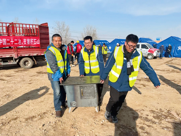 中國二冶就近組織西北分公司投入抗震救災(zāi)工作,發(fā)出《關(guān)于全力參與臨夏州抗震救災(zāi)攻堅(jiān)戰(zhàn)的請(qǐng)?jiān)笗罚杆龠x購優(yōu)質(zhì)煤炭26.7噸,采購口罩2萬只、藥品2200盒、防護(hù)服1000套、護(hù)目鏡1000個(gè)、醫(yī)用消毒酒精180瓶等醫(yī)療物資,積極協(xié)調(diào)車輛緊急送往甘肅積石山縣劉集鄉(xiāng),為受災(zāi)群眾解決燃眉之急、保障受災(zāi)群眾溫暖過冬貢獻(xiàn)了中冶力量。