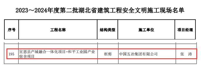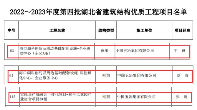 立足新起點,奮近“開門紅”。日前,中國五冶集團湖北省兩個項目喜獲佳獎。其中,黃石新港港產城融合發展綜合配套項目海口湖科創島及周邊基礎配套設施-企業研發中心(東區A座)和科創孵化中心、企業服務中心均榮獲2022-2023年度第四批“湖北省建筑結構優質工程”;宣恩縣產城融合一體化項目-和平工業園產業宿舍項目榮獲2023-2024年度第二批“湖北省建筑工程安全文明施工現場”,3號樓榮獲2022-2023年度第四批“湖北省建筑結構優質工程”。