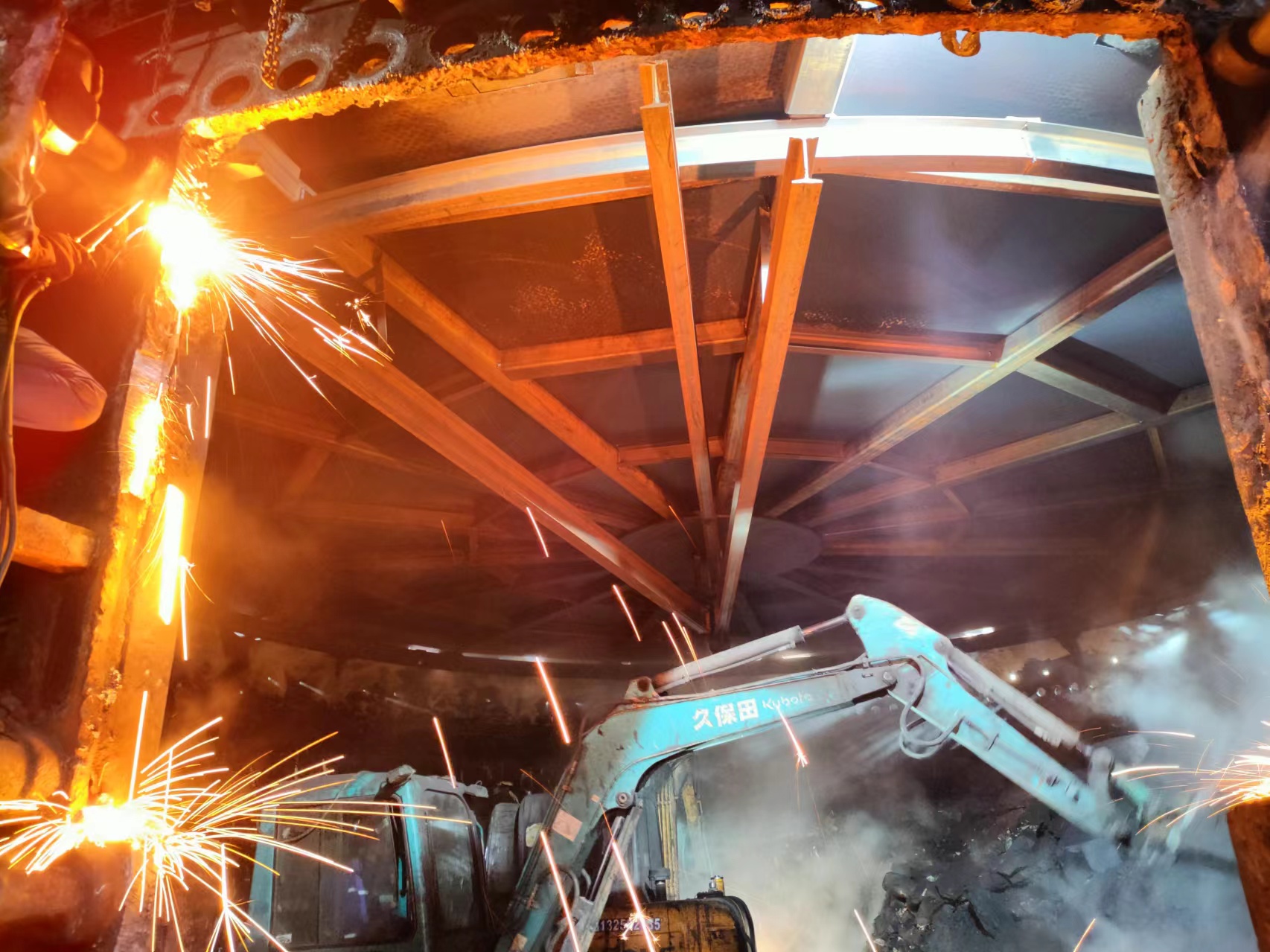 日鋼營口中厚板有限公司位于遼寧省營口市老邊區,是國內精品中厚板材重要的出口企業之一,連續中厚板出口量穩居全國第一。煉鐵廠2024年新一高爐年修項目是日鋼營口中厚板有限公司2024年重點項目之一。此次年修主要內容包括:高爐預休風,降溫、扒爐、冷卻壁拆除、冷卻壁回裝,爐缸內殘鐵清理等。因施工項目特殊,現場有多家施工單位共同施工,項目推進難度較大,進度緩慢。面對這種情況項目部立即召開關于“以管理保安全,以安全保質量,以質量保進度”專題會議,精心策劃保障工期,與各施工單位進行積極有效的溝通,利用交叉作業方式,科學、合理的利用了有限的施工時間,提高施工效率。在施工過程中項目部全體員工凝心聚力、克服困難,全身心投入到施工現場,最終圓滿完成爐缸內殘鐵清理工作,與此同時高爐主線施工進度比原計劃提前72小時。