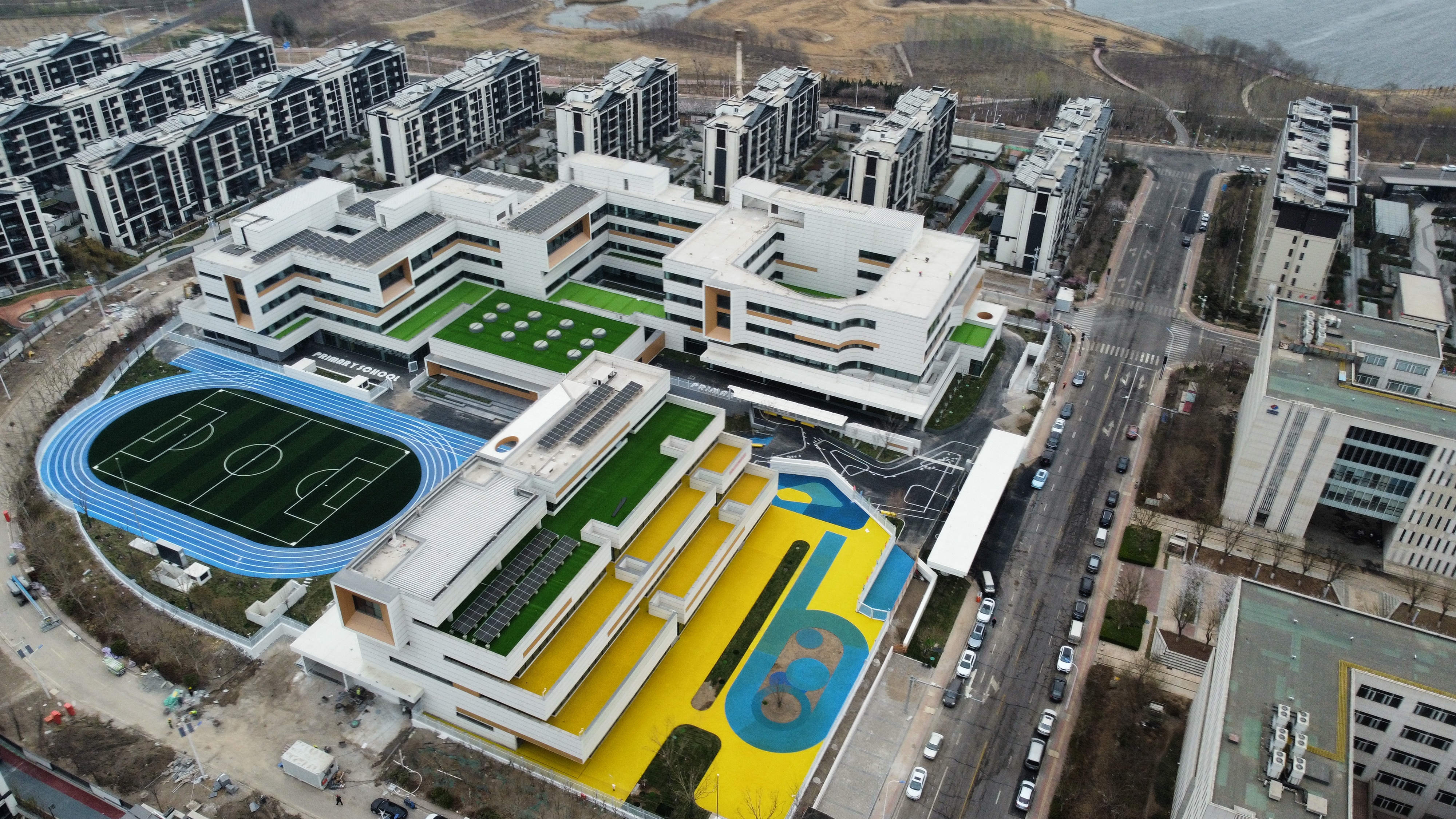 工程交付階段呈現(xiàn)“綠色”建筑。建設(shè)期間,項(xiàng)目部認(rèn)真遵照《綠色建筑評(píng)價(jià)標(biāo)準(zhǔn)》要求,與天津生態(tài)城綠色建筑研究院等行業(yè)專家密切溝通、查閱文獻(xiàn)、專題討論,立足業(yè)主建設(shè)需要,因地制宜應(yīng)用綠色建筑技術(shù),深度優(yōu)化產(chǎn)品內(nèi)容。教學(xué)樓設(shè)置了具備新風(fēng)凈化及熱回收功能的新風(fēng)系統(tǒng)及直飲水系統(tǒng),為孩子提供舒適室內(nèi)環(huán)境;校園全域鋪設(shè)復(fù)層綠化,高低錯(cuò)落有致,形成立體化室外綠化景觀;利用下凹式綠地、透水鋪裝等海綿雨水設(shè)施,有效促進(jìn)雨水下滲、滯蓄,打造綠色節(jié)水室外空間;統(tǒng)一采用光伏發(fā)電系統(tǒng),低碳環(huán)保的同時(shí)可以為學(xué)校提供源源不斷的綠色能源。目前,該項(xiàng)目已成功通過(guò)國(guó)家綠色建筑最高評(píng)級(jí)——三星綠色建筑預(yù)評(píng)價(jià)。