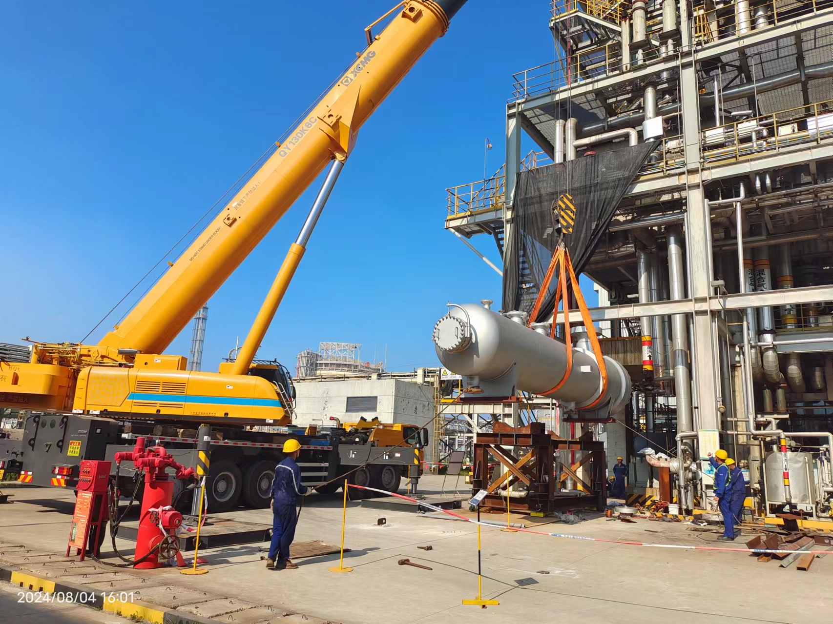 該項目位于山東省日照市東港區(qū),此次年修主要施工內容為:對一、二步LNG及合成氨系統(tǒng)到期的安全閥進行集中拆除、回裝及相關的檢驗配合;在系統(tǒng)停工及開車階段集中對中高壓熱力管線及設備法蘭口進行冷熱緊固;對部分大型關鍵換熱器類設備進行拆卸、檢查、清理、維修及回裝,并進行部分換熱器更換等。本次年修二步LNG區(qū)域從2024年6月11日至2024年7月10日,從停機到開機共計30天;二步投產順利10天后進行一步、合成氨區(qū)域總停機,時間為2024年7月20日至8月19日,從停機至開機同樣共計30天,高峰期施工人數(shù)約146人,通過作業(yè)部高效組織,年修一步和二步均嚴格按照停機時間完成了檢修任務,提高了設備生產效率,確保了產品質量。