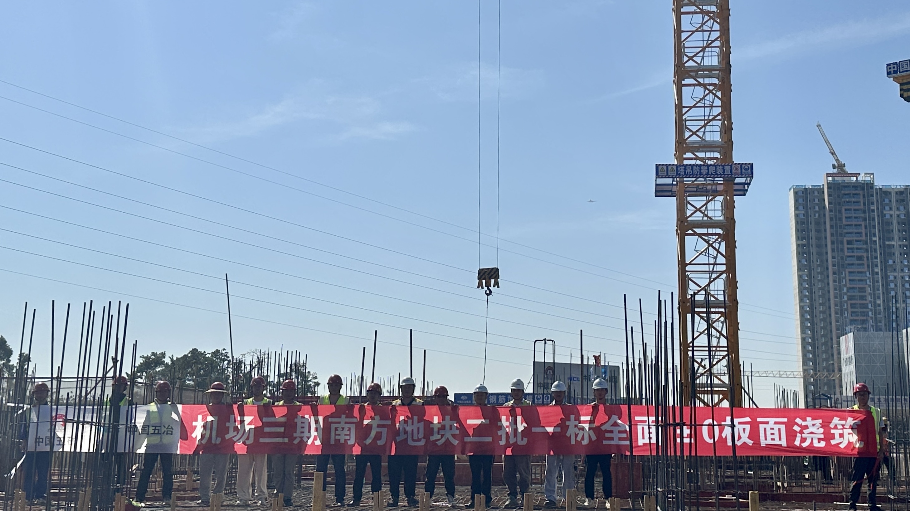 11月1日,伴隨著天泵車的轟鳴聲,由中國五冶集團承建的白云機場三期擴建工程周邊臨空經濟產業園區基礎設施三期工程(南方地塊)(第二批)設計施工總承包(標段一)工程的最后一塊頂板順利完成澆筑,標志著項目正式完成地下結構施工,轉入地上主體結構施工階段。