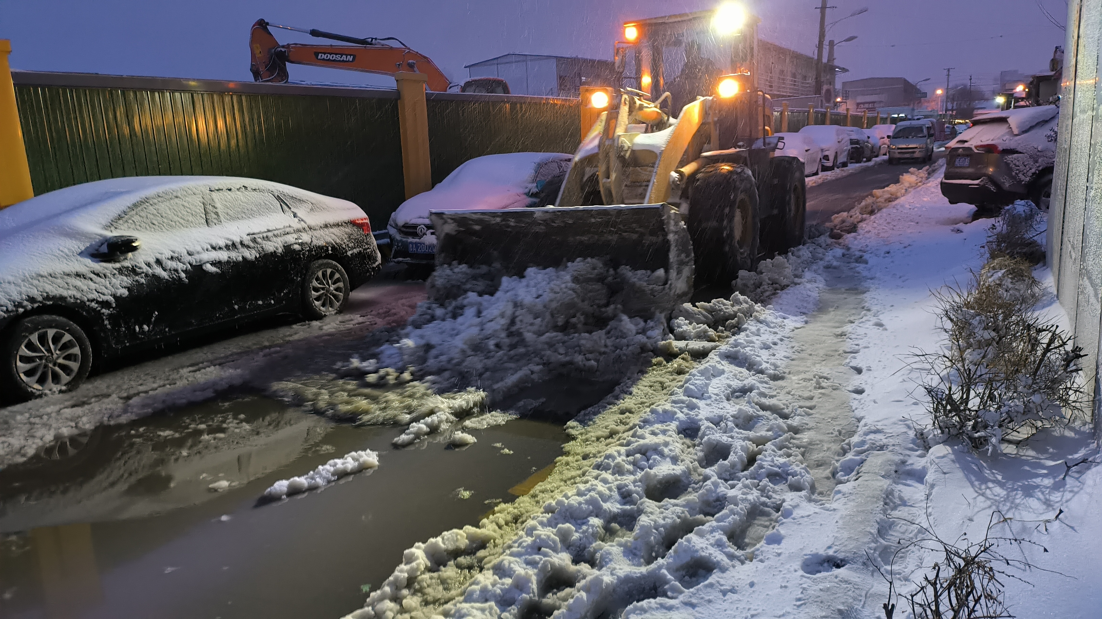 3月2日13時50分,濟南市氣象發布暴雪紅色預警信號。30分鐘內,天橋項目“抗雪救災突擊隊”完成集結,由項目負責人帶隊,火速對塔吊、腳手架、深基坑等項目現場重點部位開展“急診式”排查,在短短1小時便完成了項目工地的檢查。隨后,項目部調配更多人力與機械,分組分段奮力鏟除周邊公共道路路面的冰層,撒布融雪劑,裝載機轟鳴著將厚積雪推至路邊堆積,從工地大門延伸至主干道,一寸寸拓寬出安全通道。經過連續數小時奮戰,工地隱患排查整改到位,周邊道路積雪基本清除,車輛暢行、行人安全。