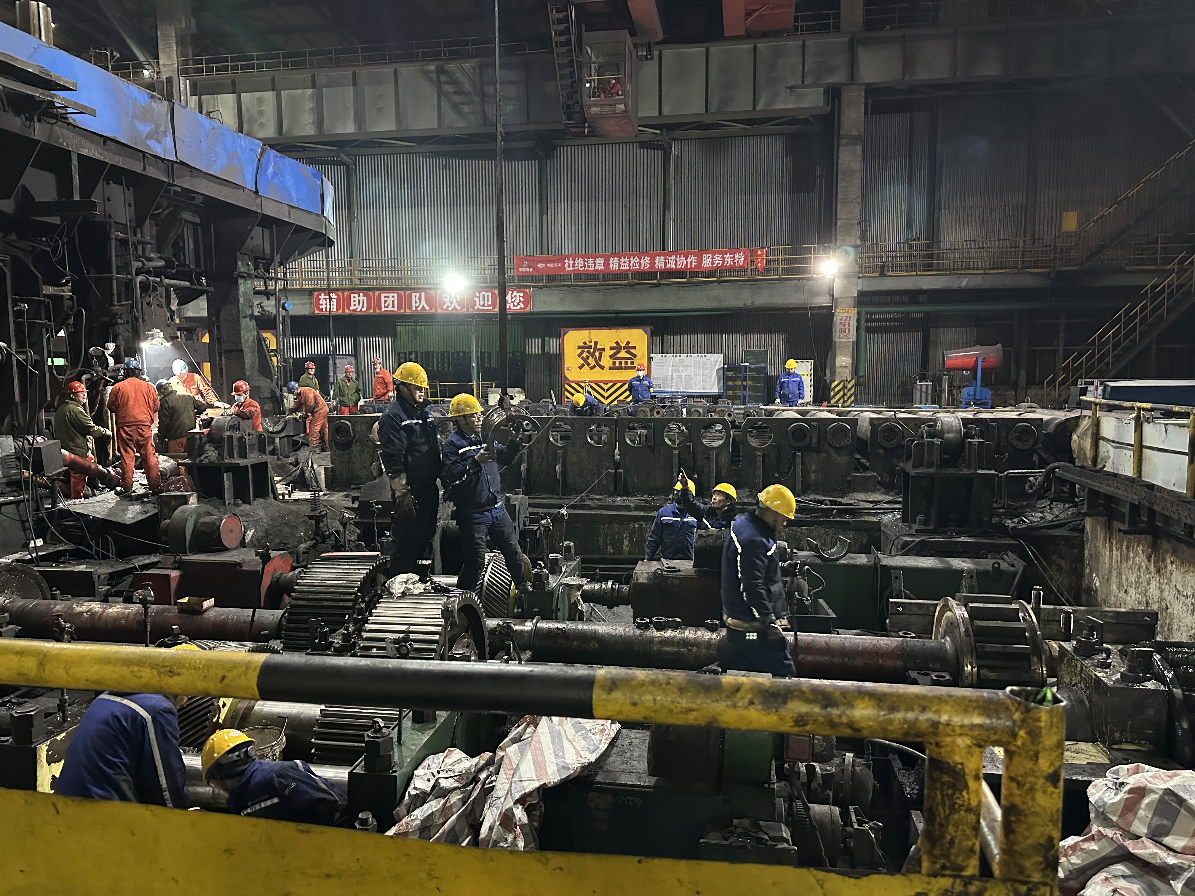 本次大修分為四大區域:煉鐵、煉鋼、鍛鋼、軋鋼,從2025年2月20日正式開始,共計承擔項目100余項,其中重點項目16項。主控項目為:煉鐵廠原料區域取料機檢修、圓盤給料機更換、新機運焦炭振動篩整機更換;煉鐵燒結區域汽輪機大修保養,燒結機更換單齒輥、篦板,燒結機3-17號風箱翻板修復,成品振動篩大修,機尾除塵風機高壓電機下線保養維護,礦槽5個焦炭稱量斗更換母板等。