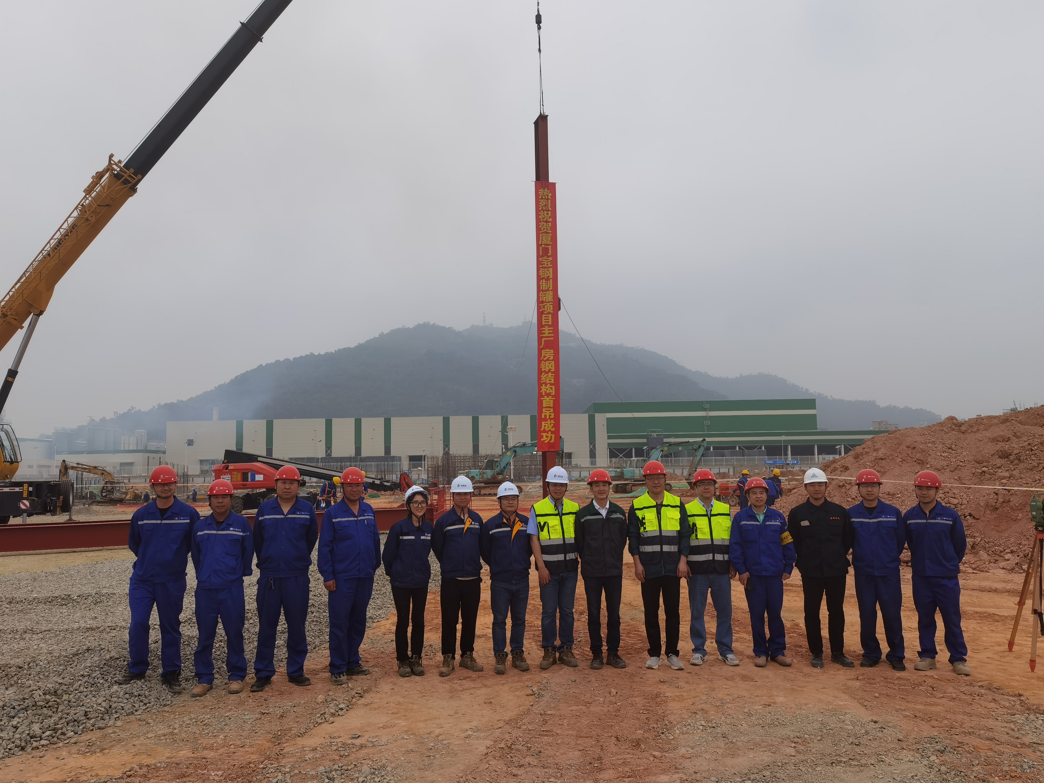 2025年3月27日8時18分,廈門新建智能化兩片罐生產基地項目主廠房鋼結構首吊儀式在廈門市同安區新民片區項目現場隆重舉行。隨著首根鋼柱精準吊裝就位(K軸18線),標志著該項目正式進入鋼結構主體施工階段。業主單位領導、監理單位、五冶項目團隊及各參建單位代表共同見證這一重要節點。