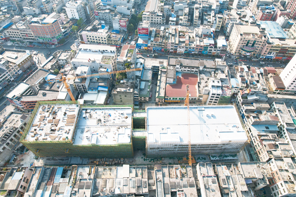 圖為中國五冶廣西都安瑤族自治縣新型城鎮(zhèn)化(一期)紅河農(nóng)貿(mào)市場改造工程項目航拍。(中國五冶集團 供圖)