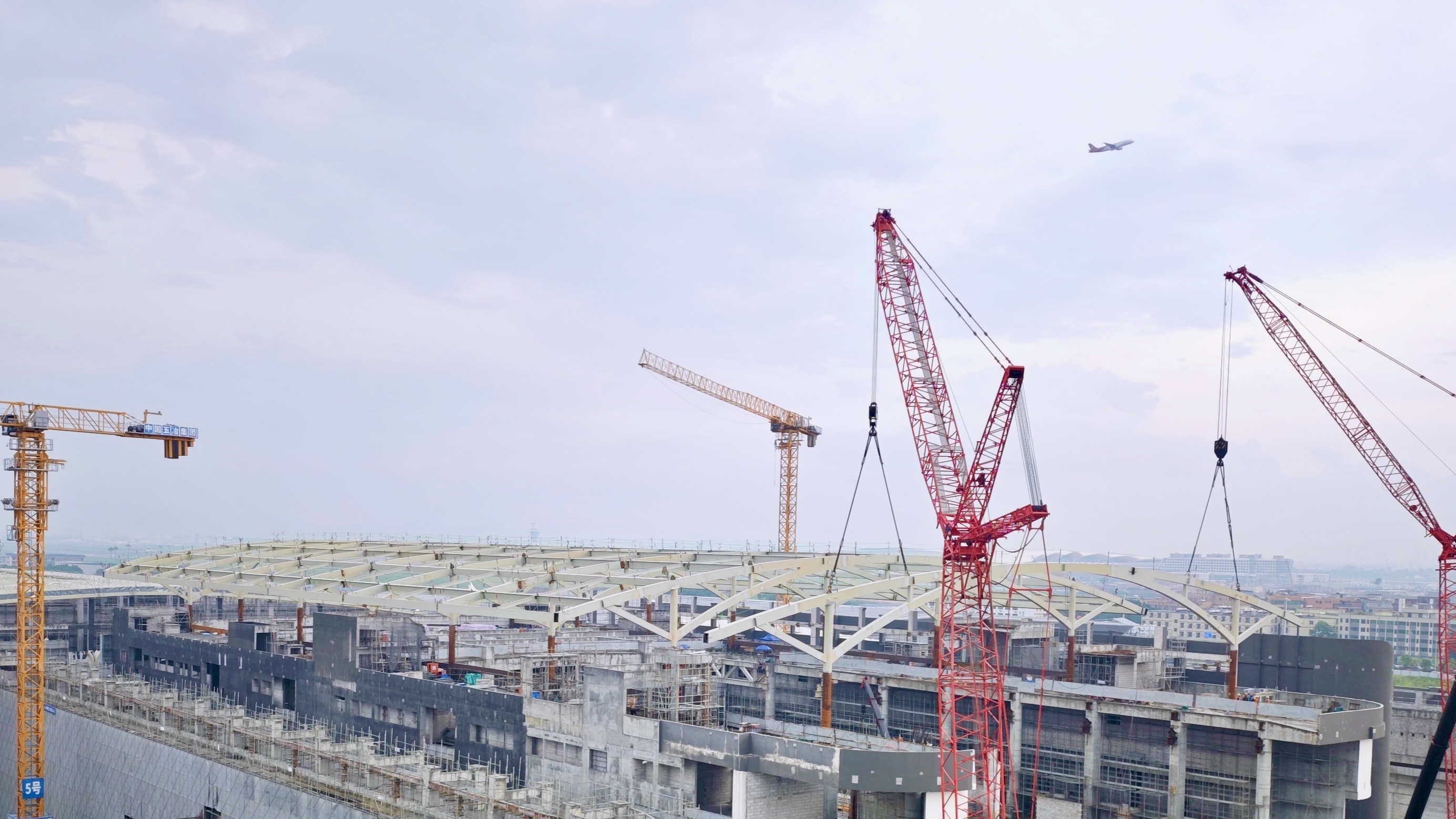 鋼結(jié)構(gòu)工程是該項目施工的核心環(huán)節(jié),其安裝質(zhì)量直接關(guān)系到整體工程的安全性和功能性。該項目總用鋼量約1.4萬噸,其中主登錄廳采用了拱梁結(jié)構(gòu)體系,最大跨度超50米,最大間距18米,單榀拱梁最重達66噸,呈現(xiàn)出跨度大、尺寸大、構(gòu)件重等特點,對施工設(shè)備、施工工藝、以及吊裝的精度和穩(wěn)定性要求極高。