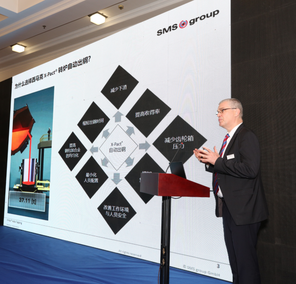 西馬克中國(guó)公司總裁兼首席執(zhí)行官Norbert THEELEN致開(kāi)幕辭。他向大家介紹了西馬克公司集團(tuán)在中國(guó)的歷史,并分析了中國(guó)鋼鐵行業(yè)的形勢(shì)。他指出,中國(guó)鋼鐵企業(yè)開(kāi)始從大規(guī)模粗放式的生產(chǎn)模式向高品質(zhì)、高質(zhì)量、高清潔的鋼生產(chǎn)模式轉(zhuǎn)變。隨著廢鋼資源增加,中國(guó)的高爐煉鐵長(zhǎng)流程模式逐步轉(zhuǎn)向更智能、更清潔的電爐煉鋼方向發(fā)展。另一方面,中國(guó)的轉(zhuǎn)爐在煉鋼起主導(dǎo)作用的位置。“西馬克集團(tuán)希望讓在中國(guó)的鋼鐵企業(yè)的生產(chǎn)更高效、更環(huán)保。”Norbert THEELEN表示。
