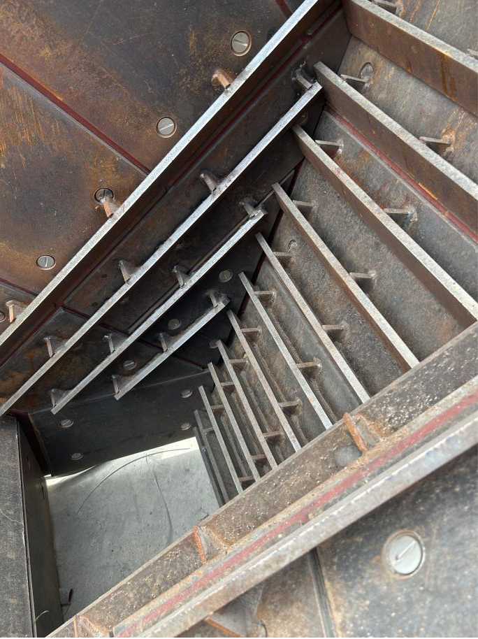 該結構包括:位于落料點區域的卡槽結構以及位于周邊區域的耐磨結構,耐磨結構采用高強耐磨料填充,且在高強耐磨料內部預埋有第一錨固件和網片,耐磨結構還設有應力消除裝置。其采用了卡槽結構來積累物料,減小了物料對料倉的沖擊;同時還減小鋼結構倉熱脹冷縮形成的應力影響;提高了內襯結構附著力、穩定性和機械強度,實現鋼結構整體造襯,對鋼結構內壁形成更有效的防護;其具有簡單快捷,效率高,防護功效強的優點。(北京聯合榮大工程材料股份有限公司專家組)