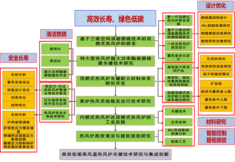 (1)創建頂燃式熱風爐工藝及關鍵耐火材料技術體系