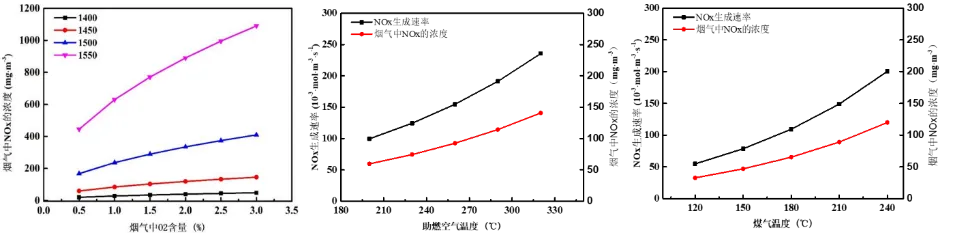 圖6 操作參數對NOx生成速率及濃度的影響