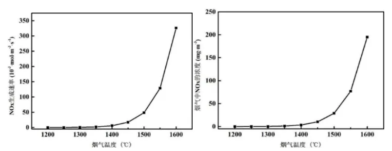 圖5 煙氣溫度對NOx生成速率及生成量的影響