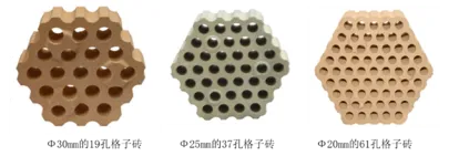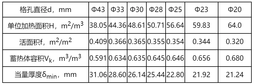 開發了非穩態數學模型計算程序,通過對熱風爐蓄熱室進行傳熱計算,研究了格子磚熱工參數對熱風爐傳熱性能影響,開發出不同孔徑的熱風爐系列高效格子磚(圖22、表3),不同格子磚傳熱參數對比見圖23。高效格子磚體系的成功研發應用,迅速改變了我國熱風爐用格子磚落后的研發生產狀況,取得了重大技術突破。