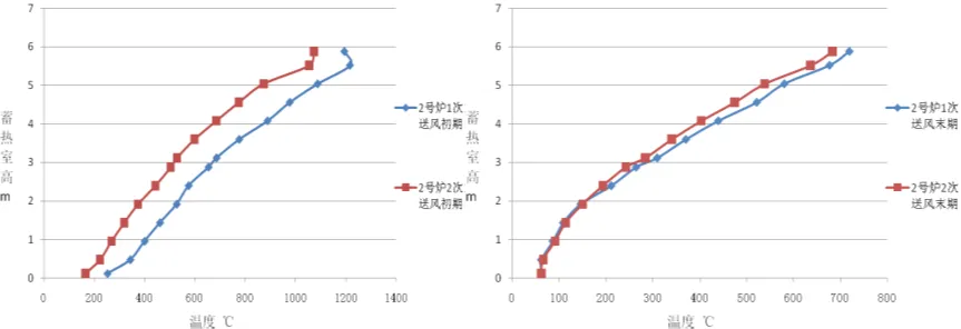 圖20 試驗熱風爐燃燒期蓄熱室溫度分布