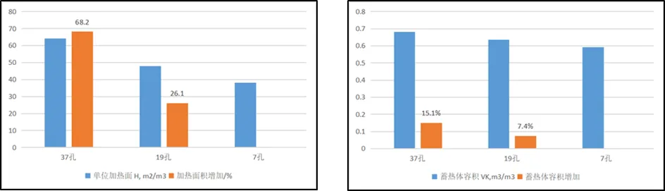 圖23 不同格孔的格子磚加熱面積和蓄熱體積比較