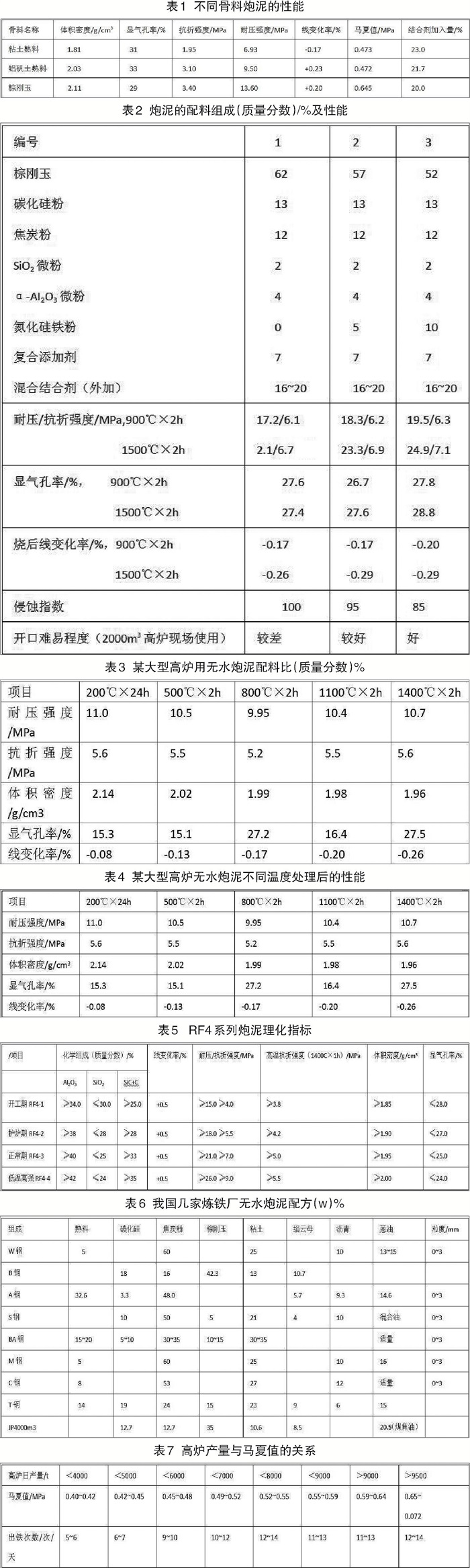 寶鋼無水炮泥的性能指標:w(SiC)=10.7%,w(Ni3N4)=4.36%,顯氣孔率由30.3%降低到24.7%~21.5%,體積密度由1.98g/cm3提高到2.50~2.74g/cm3,抗折強度由0.41MPa提高到5MPa,耐壓強度由6.2MPa提高到18MPa左右。