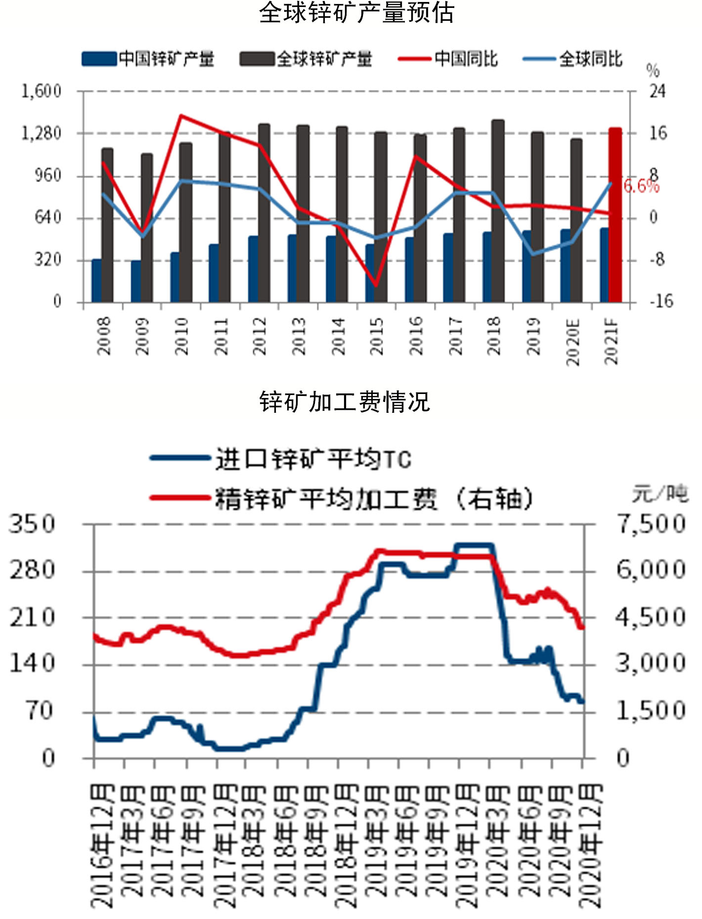展望2021年,鋅價或將經歷先揚后抑的過程。2021年上半年鋅價大概率維持強勢,從宏觀面來看,隨著美國大選等宏觀事件塵埃落定,市場一致性預期修復,以及新冠肺炎疫苗帶來的樂觀預期,鋅等順周期品種有望延續漲勢;從基本面來看,海外疫情二次暴發的可能性將導致礦端存在重大不確定性,冶煉費的連續走低或將造成冶煉能力釋放偏緊,而消費或將在新舊基建的雙輪驅動下維持景氣,鋅市或將延續供小于求的態勢。而進入下半年,隨著國內外鋅礦產能的陸續恢復,鋅礦長期供應過剩的預期將逐步兌現,鋅價可能重回弱勢軌道。
