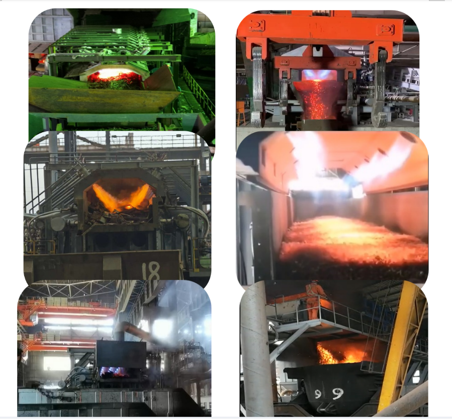 山西中陽鋼鐵轉(zhuǎn)爐爐后煉鋼車間的廢鋼預(yù)熱后的狀態(tài)