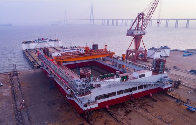“一航津平2”是由我國自主研發、具有完全知識產權的自升式碎石鋪設整平船,近日在南通下水。據報道,它將于7月服役于深中通道建設。