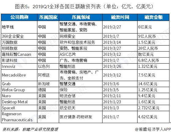 從最新披露的數(shù)據(jù)看,2019年第一季度,全球單筆融資金額超過1億美元的交易共16筆。其中中國企業(yè)獲投6筆,美國企業(yè)獲投4筆,以色列、新加坡、德國和阿根廷企業(yè)各獲投1筆。