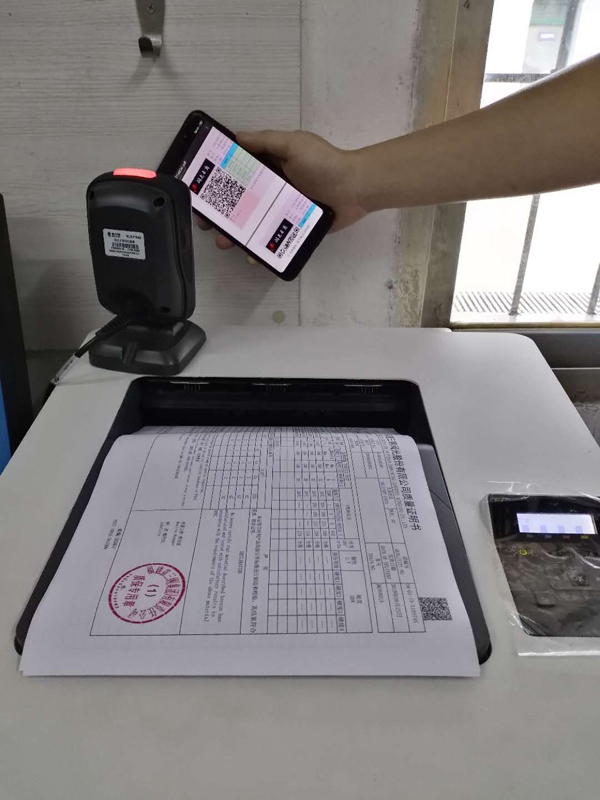 日前,三鋼閩光云商“智能提貨”系統正式上線運行。使用該系統,相關人員可以在廠區內多個網點自助打印質保書,24小時自助修改車號,只要有手機、有網絡,沒有地域限制,就能隨時操作、控制、監督提貨流程。該系統實行加密二維碼、身份證雙重驗證,可以保證提貨安全。圖為客戶在掃碼開取質保書。 (記者林智雄 通訊員鄭玉林 謝宏 攝)