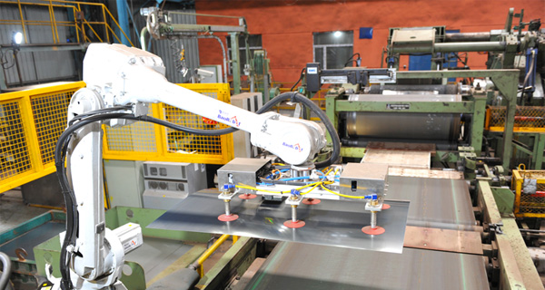 包鋼薄板廠硅鋼重分卷取樣機器人上線運行