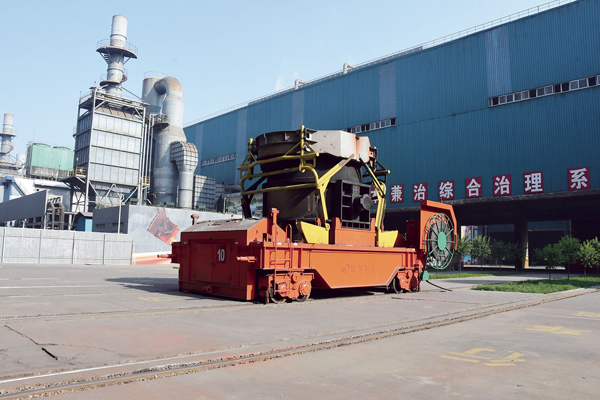 圖為晉南鋼鐵正在運行的鐵水罐車。