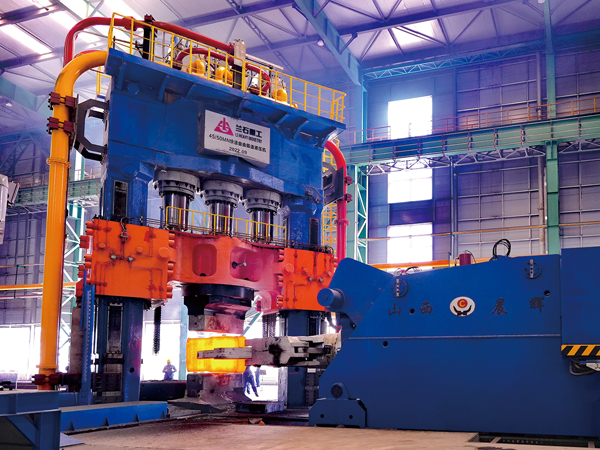 “啟動!”隨著夾鉗自動旋轉(zhuǎn)至指定位置,鍛造液壓機緩緩向下擠壓,鍛件表面附著的輕浮物料紛紛下落……操作人員站在人機交互界面前,一邊觀察著鍛件的形變,一邊對鍛造參數(shù)進行智慧巡檢。