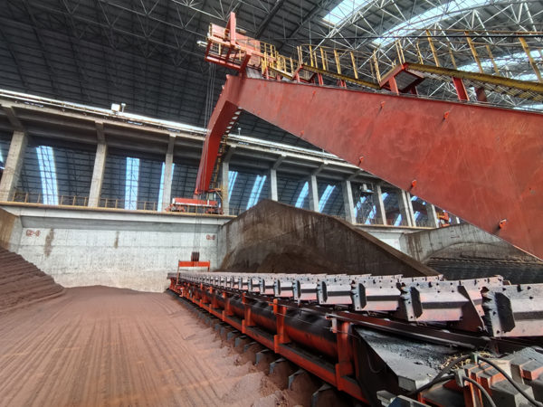 本鋼北營公司“智慧料場”于2023年11月份正式投入運(yùn)行,現(xiàn)場設(shè)備包括C型料場卸料機(jī)2臺、刮板機(jī)3臺、堆料機(jī)1臺、混勻庫取料機(jī)2臺。該“智慧料場”創(chuàng)造性地提出了原料場智能管控一體化平臺架構(gòu)及流程優(yōu)化決策方法,旨在實(shí)現(xiàn)原料場從受卸到生產(chǎn)用戶的全自動作業(yè)。