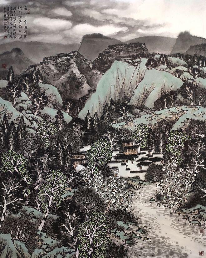 《窗外一夜清明雨 門前滿樹梨花開》國畫 馬志剛(萊鋼)