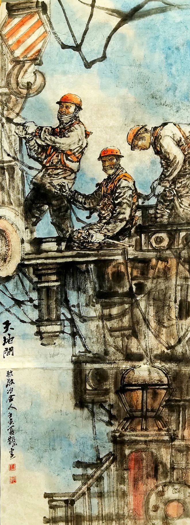 《煉鋼工人休息室》國畫 張婧(萊鋼)