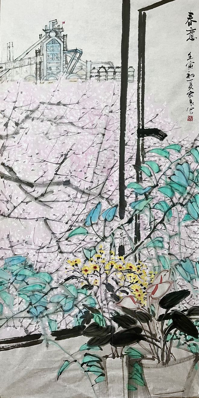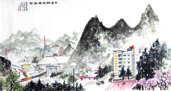《十里鋼城換新顏》國畫 顧源先(首鋼)