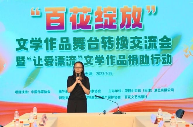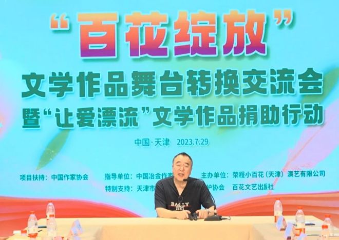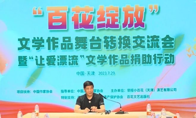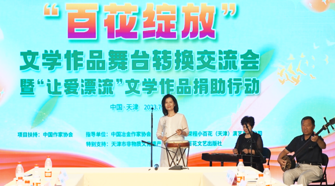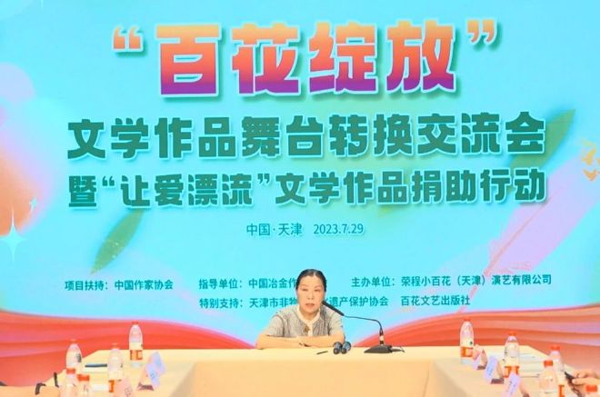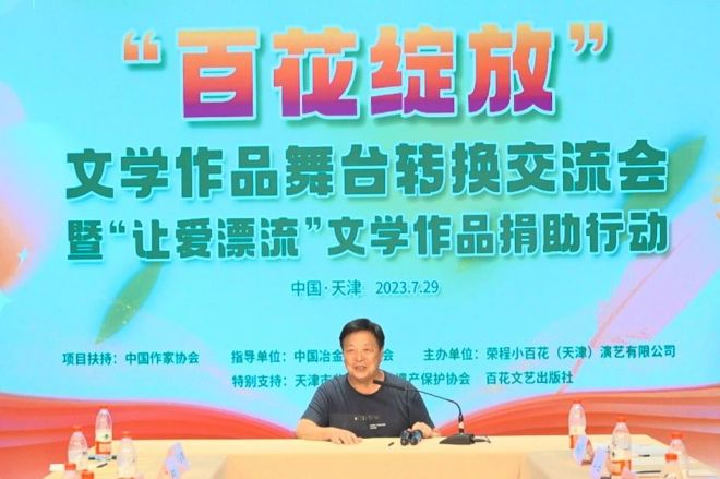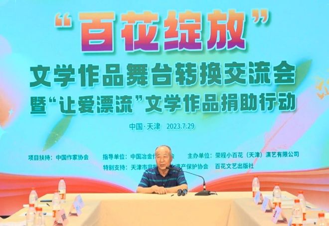 2023年7月29日上午,由中國作家協(xié)會項(xiàng)目扶持,冶金文學(xué)藝術(shù)協(xié)會、中國冶金作家協(xié)會指導(dǎo),天津市非物質(zhì)文化保護(hù)協(xié)會,百花文藝出版社特別支持,榮程小百花(天津)演藝有限公司主辦開展的“百花綻放”文學(xué)作品舞臺轉(zhuǎn)化交流會暨“讓愛漂流”文學(xué)作品捐助行動在天津榮程小百花劇場圓滿舉辦。