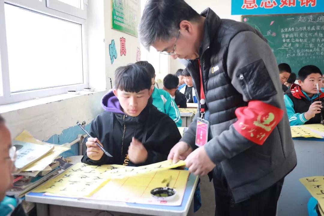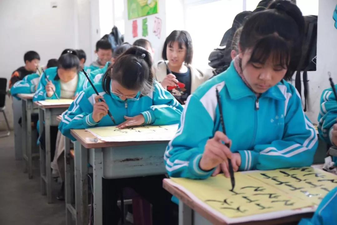 作為企業培育出來的書法創作者,走上三尺講臺,看著農村學生們一雙雙對知識渴望的眼睛,看著他們一張張稚嫩的小臉和小男生略顯粗糙的雙手,我漸漸從剛開始來到農村的不太習慣,到后來與孩子們的依依不舍;從第一次講課略有些緊張,到后來嫌一節課的時間太短不夠講;從一開始吃不習慣北方伙食,到后來與師生們一起吃得津津有味,每一天我都有新的感懷。此外,我不僅收獲了與支教隊員間協同合作的兄弟情,還收獲了一份純潔無邪的師生情,更收獲了一種吃苦耐勞、勇于實踐的精神,使我的人生觀、價值觀得到升華。